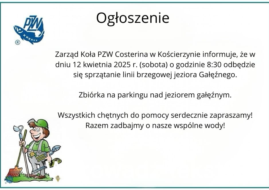 Dnia 28.03.2026 odbyło się wiosenne sprzątanie jezior Gałęźnego oraz Kaplicznego, które przeprowadziliśmy wspólnie z kolegami z Koło Nr 60 Pzw Lubiana. Pragniemy serdecznie podziękować wszystkim, którzy przyszli zadbać o nasze środowisko oraz pomóc w przygotowaniu stanowisk na zbliżający się sezon. Frekwencja była rekordowa – zebrało się nas prawie 30