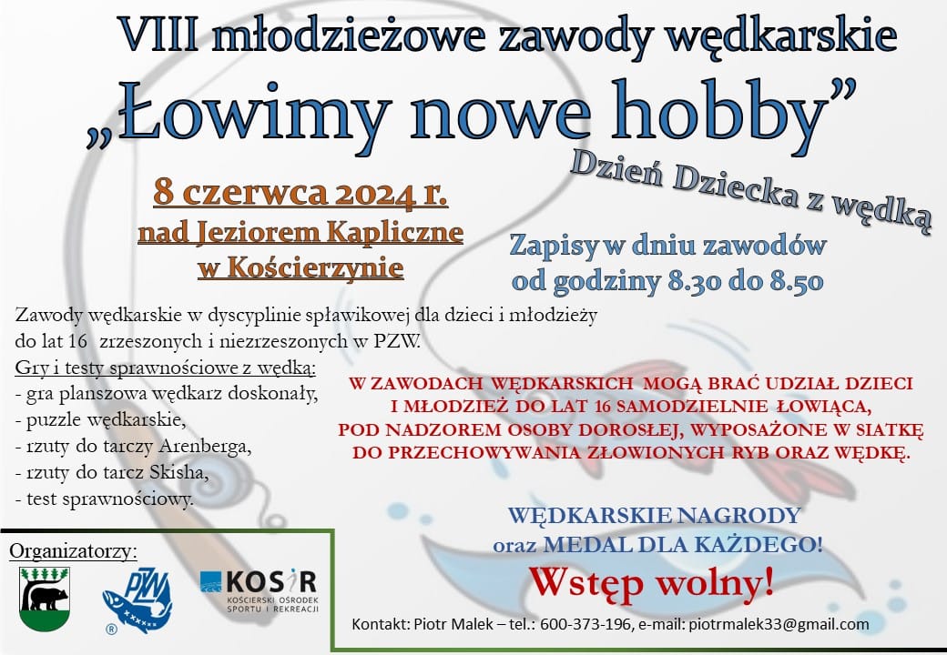 Aktualności VIII młodzieżowe zawody wędkarskie Zarząd Koła 21 maj 2024 • lektura na 1 min Serdecznie zapraszamy, 8 czerwca 2024 r., na VIII młodzieżowe zawody wędkarskie "Łowimy nowe hobby"...