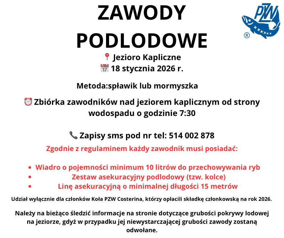 Dnia 28.03.2026 odbyło się wiosenne sprzątanie jezior Gałęźnego oraz Kaplicznego, które przeprowadziliśmy wspólnie z kolegami z Koło Nr 60 Pzw Lubiana. Pragniemy serdecznie podziękować wszystkim, którzy przyszli zadbać o nasze środowisko oraz pomóc w przygotowaniu stanowisk na zbliżający się sezon. Frekwencja była rekordowa – zebrało się nas prawie 30