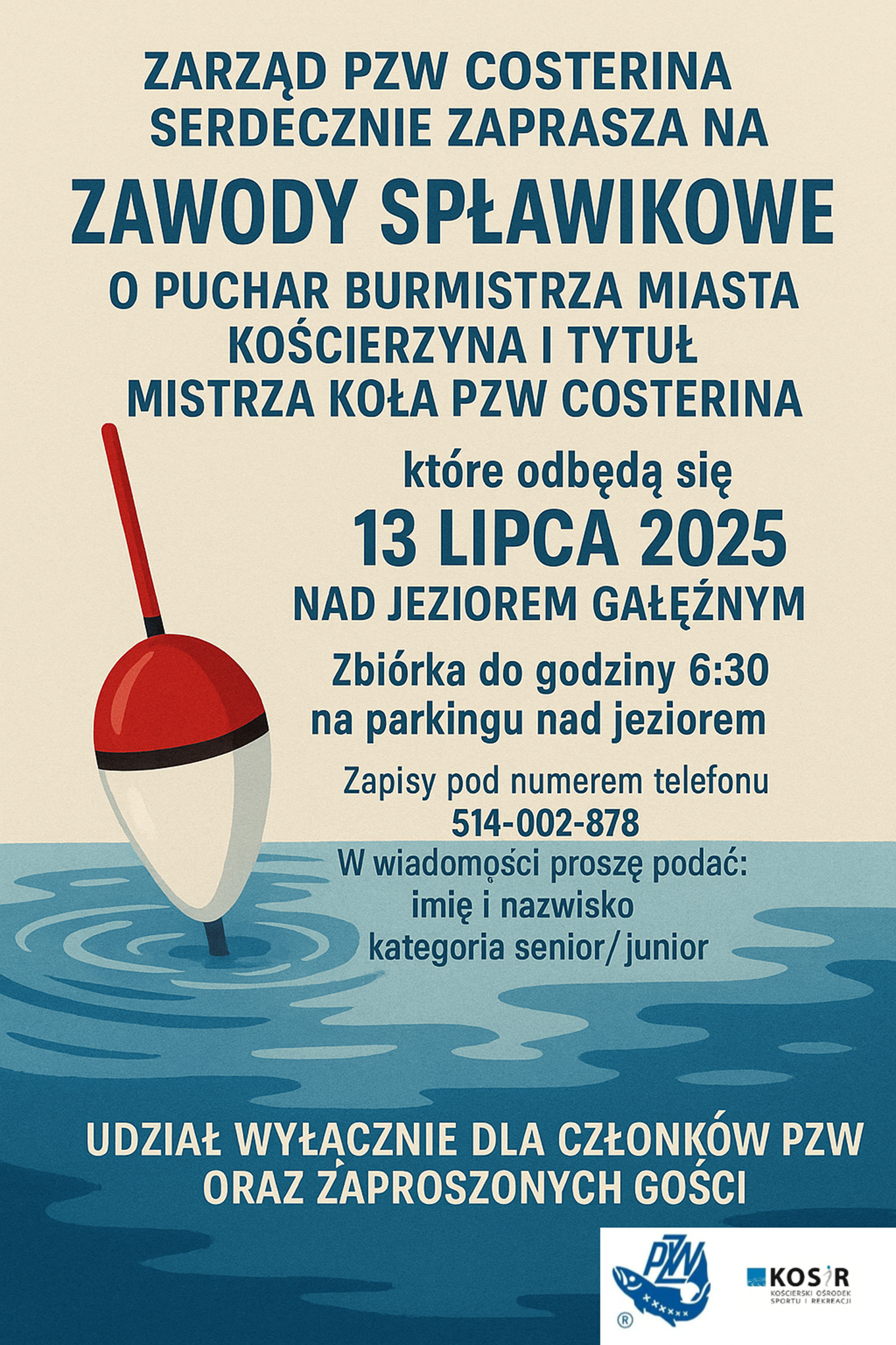 🎣 Zapraszamy wszystkich członków Koła PZW Costerina na zawody o Puchar Burmistrza Miasta Kościerzyna 🏆 oraz tytuł Mistrza Koła 🎖️
